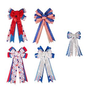 Custom Colorful Burlap Bow Wire Edge Ribbon for Independence Day