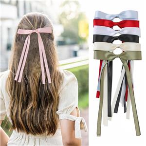 Wholesale hair bow ribbon clips, metal base, soft bow. Long tail tassel, daily wear. OEM custom logo, MOQ 300pcs.